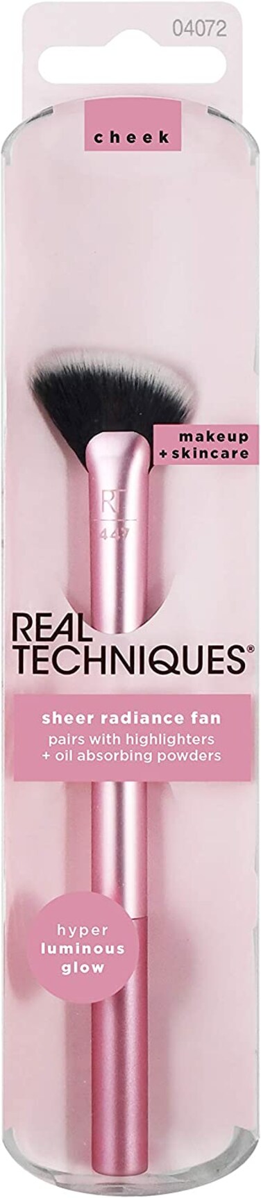 Real Techniques Sheer Radiance Fan Makeup Brush, For Highlighter + Facial Oil Absorbing Powders, Create Face Glow, Cruelty Free Bristles, Aluminum Ferrules, Pink, 1 Count