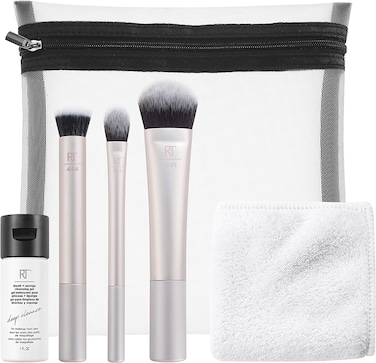 The Skin Love Complexion Kit 6 Piece Mother's Day & Easter Gift Set includes our NEW! hybrid complexion brushes that effortlessly apply makeup & skincare formulas to enhance skin’s texture & create a radiant dewy finish. Paired with our makeup remover cloth and our mini brush cleansing gel, it’s a complete kit to keep your complexion looking flawless. Kit includes RT 444 Filtered Cheek Brush, RT 242 Brightening Concealer Brush, RT 241 Seamless Complexion Brush, Makeup Remover Cloth, Brush + Sponge Cleansing Gel, & a Brush Bag! Designed by makeup artists. Loved by millions. Real Techniques brings quality makeup brushes and tools used by professional makeup artists to the hands of beauty-obsessed customers around the world. Since 2011, we have been creating tools and accessories to help make the most of your favorite makeup. With a beauty community of over 5 million, Real Techniques strives to inspire, educate, and empower our fans to make the most of their favorite products. Star products like the Miracle Complexion Sponge make blending foundation and concealer effortless while the Everyday Eye Kit – a handpicked selection of brushes - make a runway-ready smokey eye easily achievable. Real Techniques makes the craft of makeup artistry easy for anyone to understand, whether they’re striving for the best no-makeup look or creating the next viral TikTok video.
