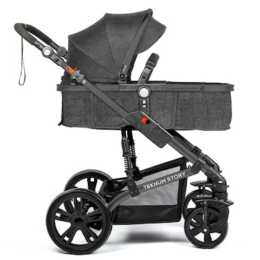 Teknum 3 in 1 pram stroller by SAMBOX, makes your baby travel in luxury and will surely give baby a royal look! Made from highest quality of linen, this is most convenient for baby skin. This premium Stroller in a 3 in 1 gear with wide bassinet, multi - position seat, fully adjustable canopy and handlebar, easy installation and collapse, stable aluminum alloy frame gives it a premium feel and shock absorbing tires offer the highest safety to babies. The umbrella like canopy and a wide storage basket below makes it a winner of all.