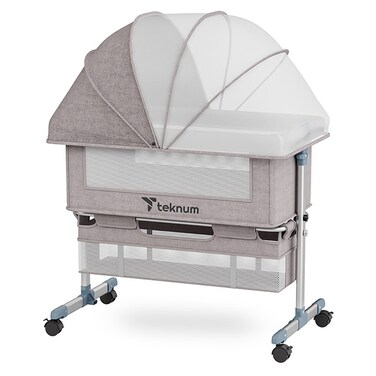 Teknum Bedside Crib by SAMBOX is the best for both mum and the baby. The Newborn recognizes mum with the mother's scent and breathing sound. This bedside crib can be conveniently be placed next to the bed and lock wheels, so it doesn't move.