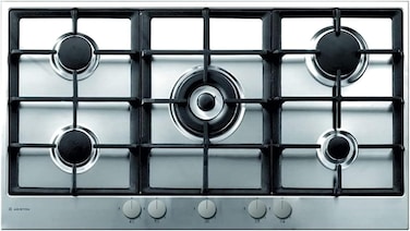 Ariston Built-in Hob 5 Burners With Cast Iron Grids - Inox - PK951TGHSA This high-efficiency cooker from Ariston with 5 burners is the best choice for you with variable sizes and power levels to suit every style of cooking you wish for. The different sized burners accommodate a variety of pot sizes while ensuring full safety.