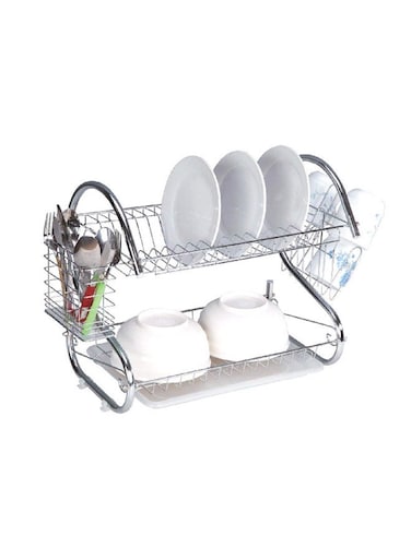 - Almufarrej 2-Shelf Dish Storage Rack, Silver, 45X11.5X26cm