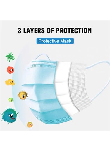 Generic 50-Piece Disposable 3-Layer Protective Face Mask Blue 1 Pack Of 50 Pcs