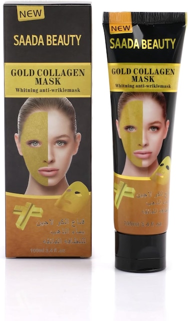 Saada Beauty Black Collagen Mask with Gold Juice Make your face smooth and clean with this 24k gold mask excellent for making your skin smooth and shiny, you can feel your skin more elastic after use, your skin more elastic. It helps moisturize and deeply nourish the skin to make it white and healthy. This collagen mask removes blackheads, comedones, and most dead skin dirt. Suitable for all skin types and reveal beautiful, healthier-looking skin. 24K Gold mask to help aging, whitening, moisturizing, and oil control. Comes in 100 ml pack.