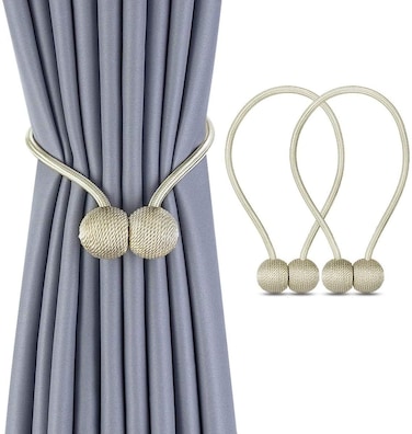 Sky-Touch 1 Pair Magnetic Curtain Tiebacks Magnetic Curtain Straps Strong Magnetic Curtain Buckle For Home Office, Beige