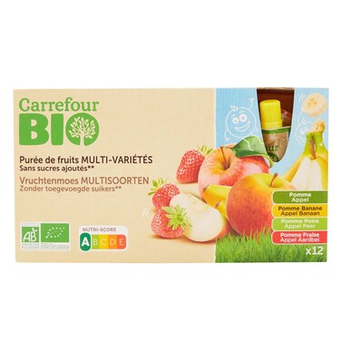 Carrefour Bio No Added Sugar Multi Variety Fruit Puree 90g x Pack of 12