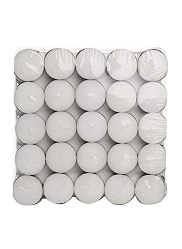 Saubhagya Global 100-Piece Unscented Smokeless Tea Light Wax Candles White 8x8x4inch