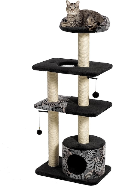 Midwest Homes For Pets Cat Tree, Tower Cat Furniture, 5-Tier Cat Tree With Sisal Wrapped Support Scratching Posts & High Cat Look-Out Perch, Black/White Pattern, Large Cat Tree