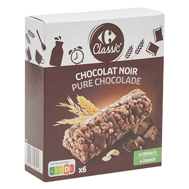 - Treat yourself to a delicious snack with Carrefour Classic' 4 Cereal Dark Chocolate Bars.