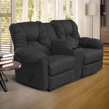 American Polo Linen Double Cinematic Recliner Chair With Cups Holder - Dark Grey - American Polo