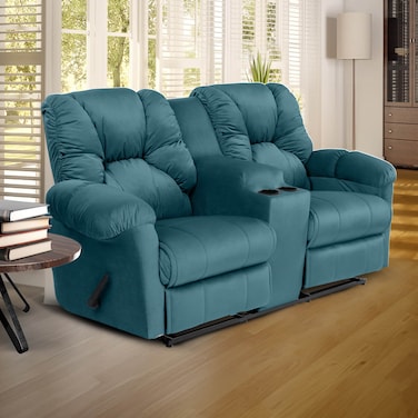 American Polo Velvet Double Cinematic Recliner Chair With Cups Holder - Dark Turquoise - American Polo