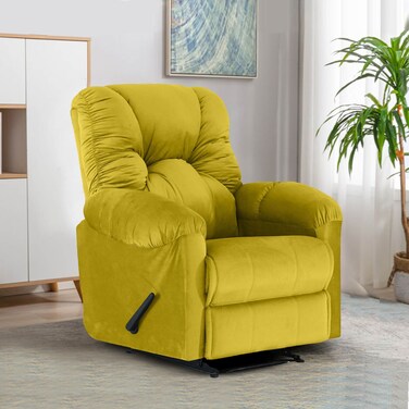 American Polo Velvet Rocking & Rotating Recliner Chair - Gold - American Polo