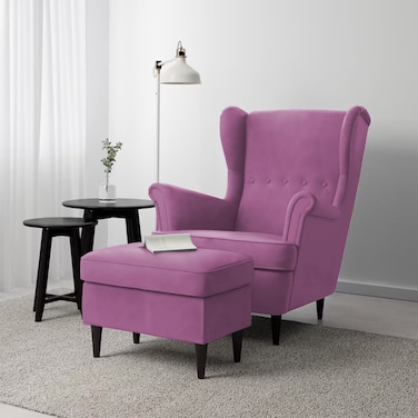 In House 2 Pieces Chair King Velvet With Two Wings And FootStool - Light Purple - E3