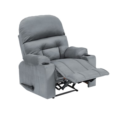 In House Velvet Classic Cinematic Recliner Chair With Cups Holder - Grey - NZ80