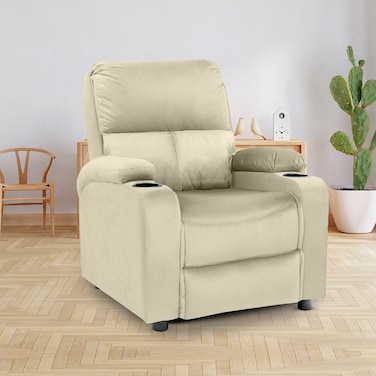 In House Velvet Classic Cinematic Recliner Chair With Cups Holder - Light Beige - NZ70