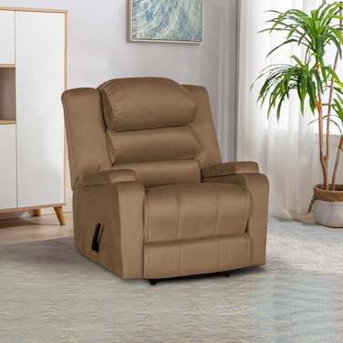 In House Velvet Classic Recliner Chair With Storage Box - Light Brown - AB07