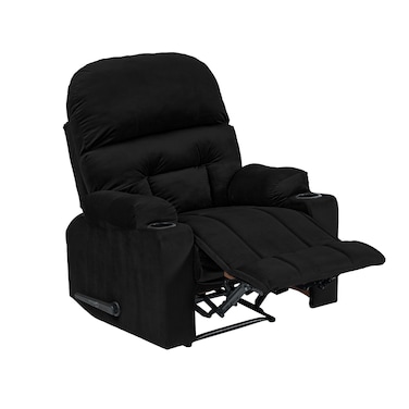 In House Velvet Rocking Cinematic Recliner Chair With Cups Holder - Black - NZ80