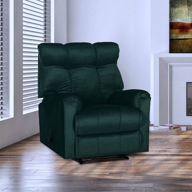 In House Velvet Rocking Recliner Chair - Dark Green - AB011