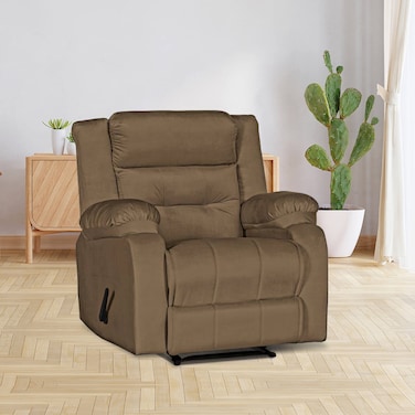 In House Velvet Rocking Recliner Chair - Light Brown - NZ30