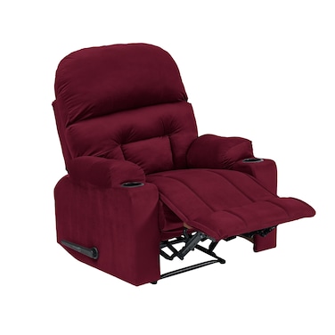 In House Velvet Rocking & Rotating Cinematic Recliner Chair With Cups Holder - Burgundy - NZ80