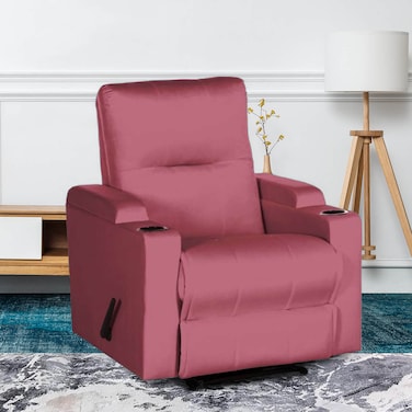In House Velvet Rocking & Rotating Cinematic Recliner Chair With Cups Holder - Dark Pink - AB08