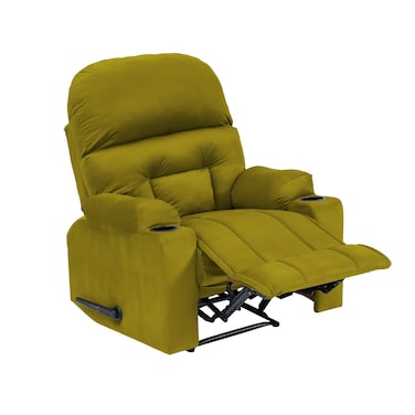 In House Velvet Rocking & Rotating Cinematic Recliner Chair With Cups Holder - Gold - NZ80
