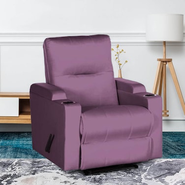 In House Velvet Rocking & Rotating Cinematic Recliner Chair With Cups Holder - Light Purple - AB08
