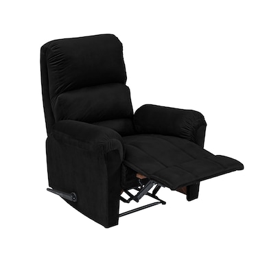 In House Velvet Rocking & Rotating Recliner Chair - Black - AB09