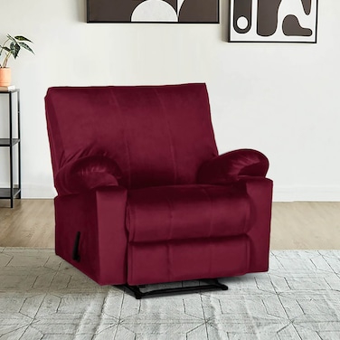 In House Velvet Rocking & Rotating Recliner Chair - Burgundy - H1