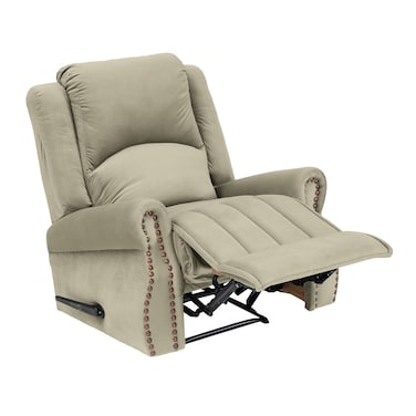 In House Velvet Rocking & Rotating Recliner Chair - Light Beige - NZ120