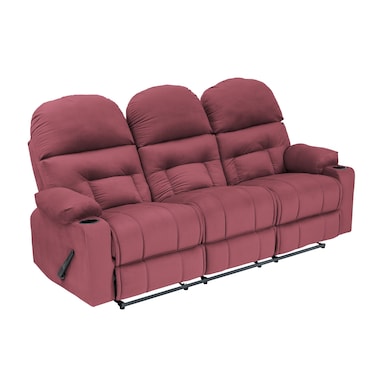 In House Velvet Triple Cinematic Recliner Chair With Cups Holder - Dark Pink - NZ80