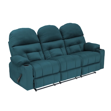 In House Velvet Triple Cinematic Recliner Chair With Cups Holder - Dark Turquoise - NZ80