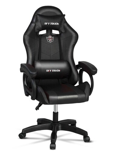 Sky-Touch Adjustable Gaming Chair, PU Leather, High Back, Lumbar Support, Comfortable Armrest Headrest, Black