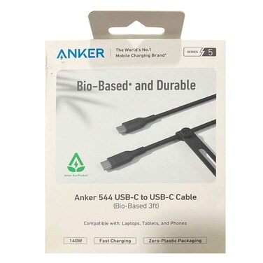 The Anker Bio-Based USB-C to USB-C Data Sync and Charging Cable in black is a sustainable and eco-friendly option for your charging needs. Made with bio-based materials, this 3ft cable is not only durable and reliable but also helps reduce environmental impact.