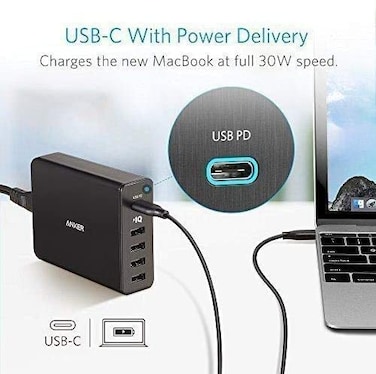 Anker USB C Wall Charger, Premium 5-Port 60W USB Wall Charger Powerport+ 5 USB-C With Power Delivery For Apple Macbook And Poweriq For iPhone, Ipad, Samsung And More