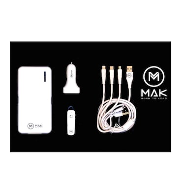 Mak 4 In 1 Cable + Earphone + Power Bank + Car Charger White