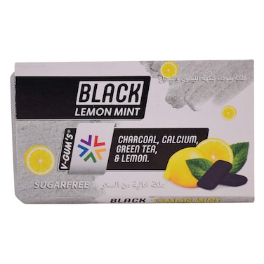 V-Gum Sugar Free Black Lemon Mint Charcoal Calcium Green Tea Chewing Gum 17g