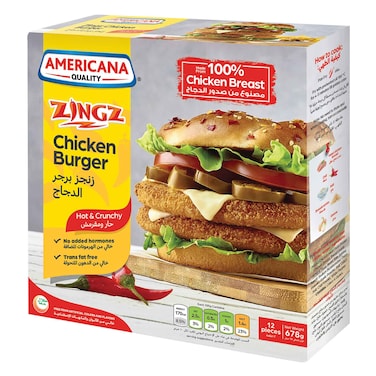 Americana Zingz Chicken Burger- Breaded Hot & Crunchy 678g (12 pcs)