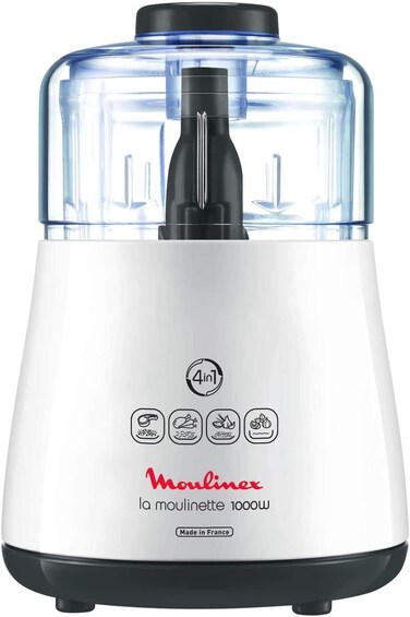 With La Moulinette 1000 W, efficient chopping is made easy. Thanks to the exclusive Powelix blades technology, its two ultra-sharp blades tackle everything from raw meat to aromatic herbs, in seconds. Its powerful 1000W motor provides efficient, fast results and features a built-in-motor protection system to protect against overheating, offering increased safety and extended motor life. Meanwhile its 4-in-1 functions make it the ideal helper in your day-to-day home cooking! Chop, mince, mix and grind in a large 500 ml bowl offering big capacity. Rounding it off are a slew of convenient features: practical 1-2-3 simple pressure system for quick results, transparent jug for direct viewing of your preparation, easy to assemble and dishwasher-safe removable parts for easy clean-up.