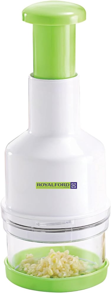 Royalford Vegetable Chopper built with sharp stainless steel blades, this chopper quickly and effortlessly chops vegetables. The storage bowl of this chopper is transparent so that you know when it almost full. Moreover, the ergonomic design of this Royalford vegetable chopper offers a firm grip for ease of use. Storing this convenient chopper is not a problem, thanks to its compact build.