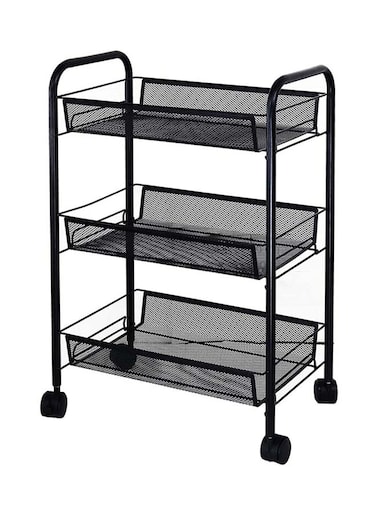 Almufarrej 3-Tier Mesh Wire Rolling Cart Black