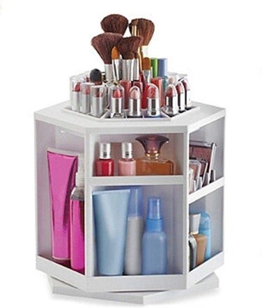 Generic Spin 360 Make Up Organizer Cosmetic Storage Box- White [W]