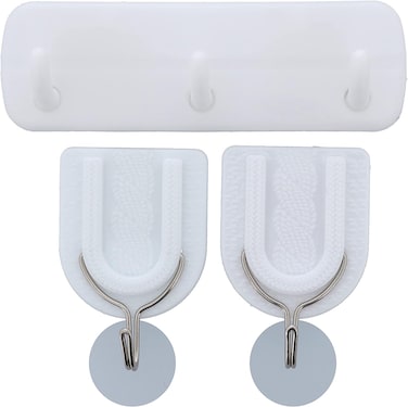Royalford 5 Pcs Sticky Hooks, Plastic With Steel Hook, Rf10448, Self Adhesive Wall Hook, Smiley Hooks For Bathroom, Kitchen, Bedrooms, Closet, Office, Showrooms, Laundry Room And More