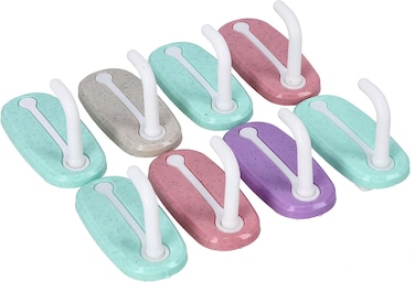 Royalford 8 Pcs Sticky Hooks, Plastic Hook, Rf10455, Self Adhesive Wall Hook, Smiley Hooks For Bathroom, Kitchen, Bedrooms, Closet, Office, Showrooms, Laundry Room And More