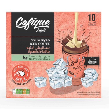 Cofique Iced Coffee With Spanish Latte Flavor, 10 Coffee Sachets, 24g Per Sachet