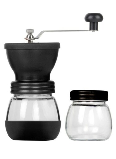 Generic Manual Coffee Bean Grinder With Glass Jars -Black/Clear
