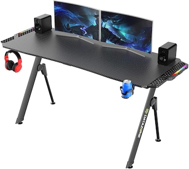 Data Zone Gaming Desk 156cm, Professional RGB Gaming Table, Workstation Home Office Computer Desk With Large Carbon Fiber Surface, Cup Holder, Headphone Hook And Cable Clamp, Blade Gt-V2 GRB, Black