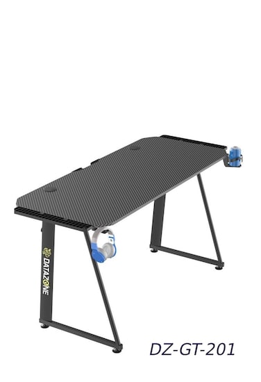 Gaming Desk 153cm, Professional Gaming Table, Home Computer Desk and Workstation with Large Carbon Fiber Surface, Cup Holder, Headphone Hook and Cable Clamp, Black, GT-201B by Datazone