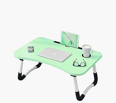 Datazone Foldable Laptop Table, Adjustable Bed Table With Stand For Smartphone, iPad, Cup Slot Suitable For Multiple Uses For Study, Reading And Eating, DZ-TP003, Green