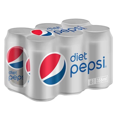 Pepsi Diet Carbonated Soft Drink Cans 355ml Pack of 6
